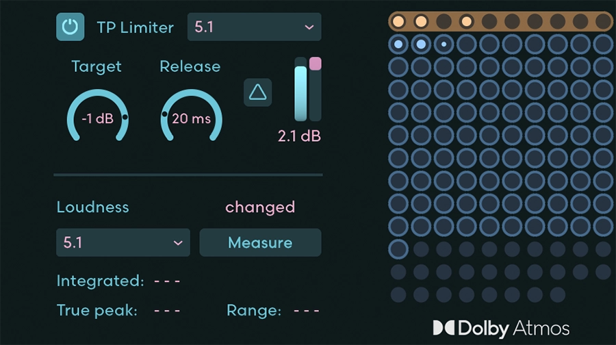 Measure loudness, automatically adjust LKFS value and engage the unique True Peak Limiter for making sure the master stays within the loudness norms.